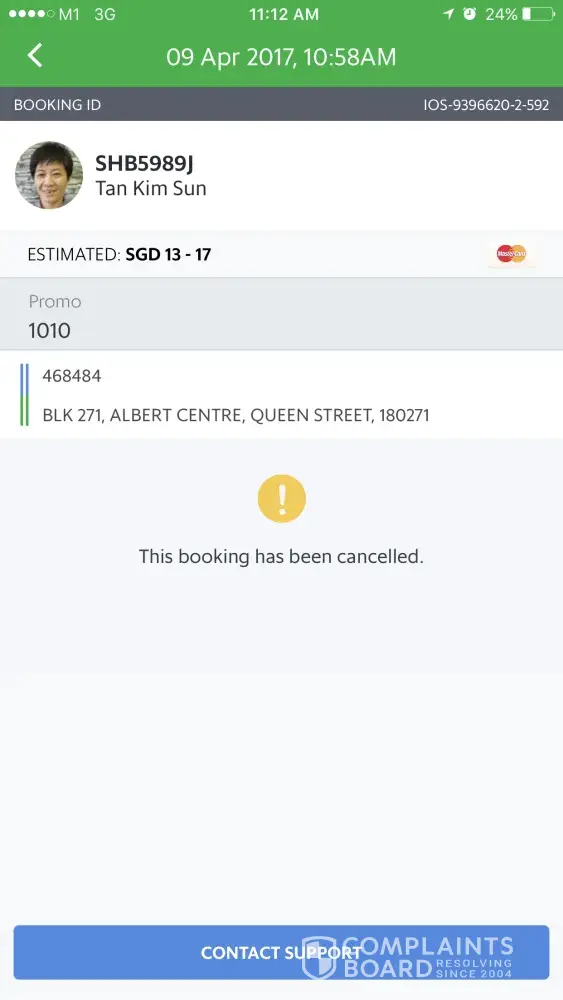 As to ease the driver's trouble for having to make an U-turn, I obliged to the driver's request and decided to cross the road at the expenses of my parent's safety. To my horror, the driver cancelled the booking while I was crossing the road and he drive off without a second thought! I was stranded in the middle of the road jeopardizing my parent's safety to accommodate the driver's request.