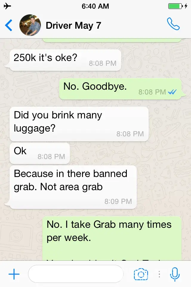 1. When he reassured himself if that was my phone number on Grab. And save it on his personal phone.
