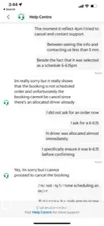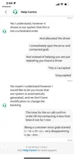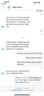 I have scheduled an order for a 6-6.15pm delivery time at 3.13pm and confirming it before I press order payment. Upon confirmation the delivery is changed to Now (3.45pm-4pm) and I straight away contacted Support at 3.15pm. Instead of helping, Support keep repeating that I have not scheduled an order. And they could not do anything, the driver allocated till the driver delivering. The ordeal ended at 3.45pm with no help at all from Grab end.