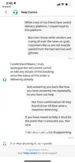 Now, my wife had chatted with your Support and have request for the order to be cancelled, but your wonderful support team said it can't be cancelled as the delivery is already on the way but it still showed MY ORDER IS STILL IN THE BLOODY KITCHEN!