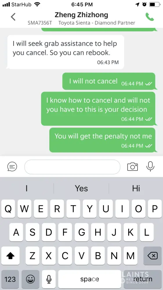 My friend witnessed everything and he decided to cancel the grab.