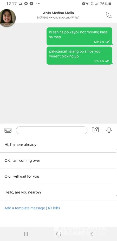 I booked a Grab ride from my home to my destination. The rider didn't reach my house, so I checked my Grab App. Its stated that Grab car has arrived. I text him where he is now but he replied front of my house but he was not there. When reach 5min he just left. He parked his car behind a mango tree at my neighbour house. This is cheating. And this not first time. I had another similar experience when I booked a short trip. I commute Grab service everyday but unfortunately some grab drivers has no integrity.