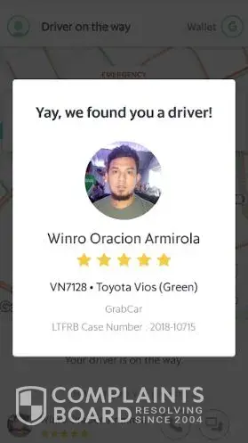 He was wearing shirt with GRAB logo, formal ID and list of taxi pricing with GRAB logo.