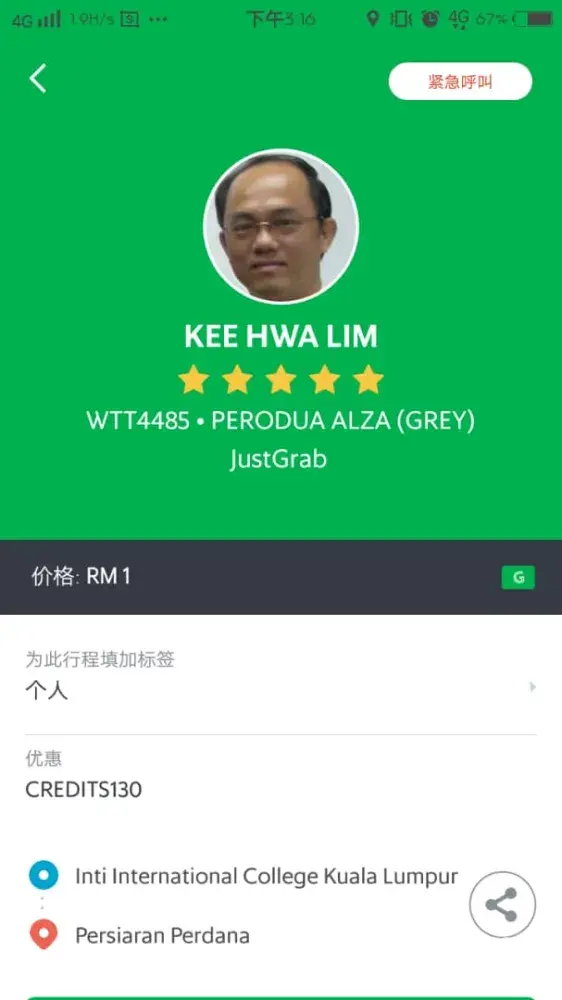 Grab car stolen by grab driver (andrew chung tat phin ic no:920912-12-xxxx)