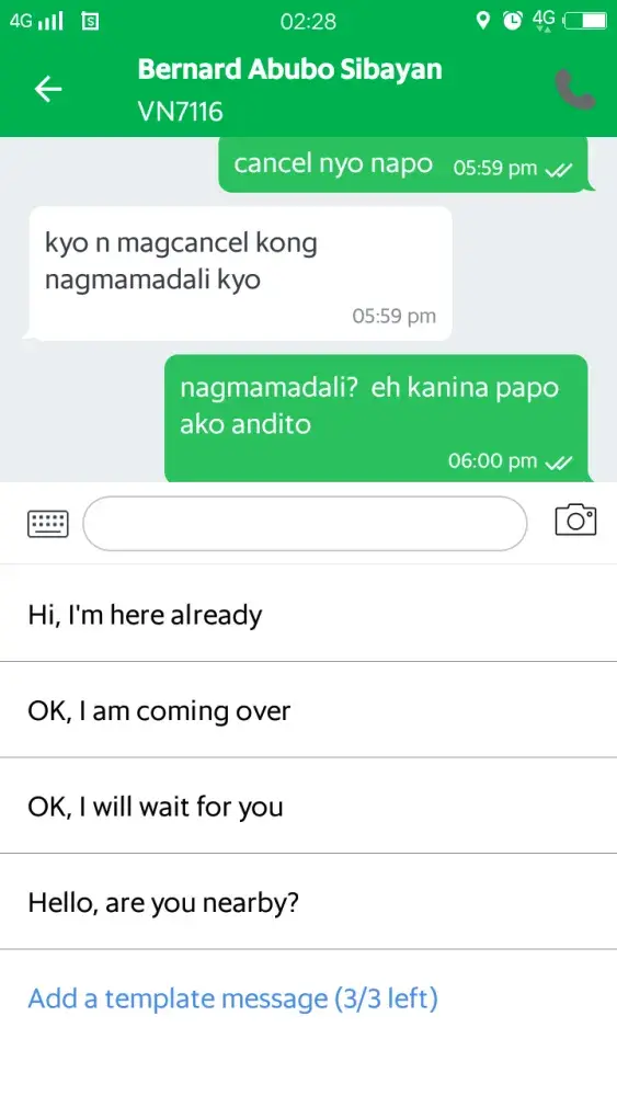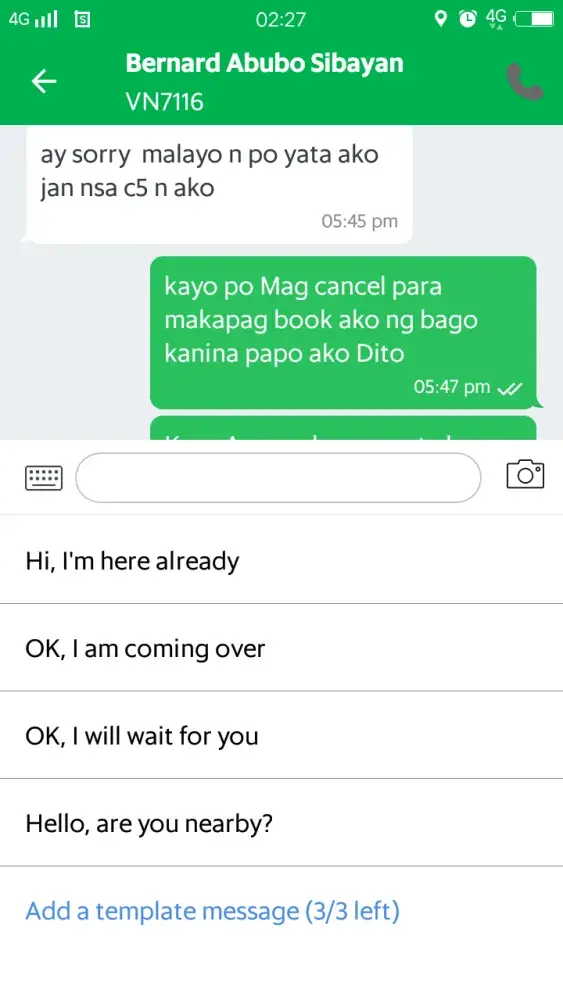 Sana maturuan ng leksyon yang bastos na grab driver na yan wala syang karapatan na sabihan ako ng "bwisit ka" hindi sya ang unang driver na na cancell trip at nag hintay ng 3 minutes kung naabala ka pasensya na pero wala kang karapatan sabihan ako ng kung ano ano at sabihan ng bwisit ako kahit bayaran ko yang 144 na trip ko daig mo pa ang babae pumutak.