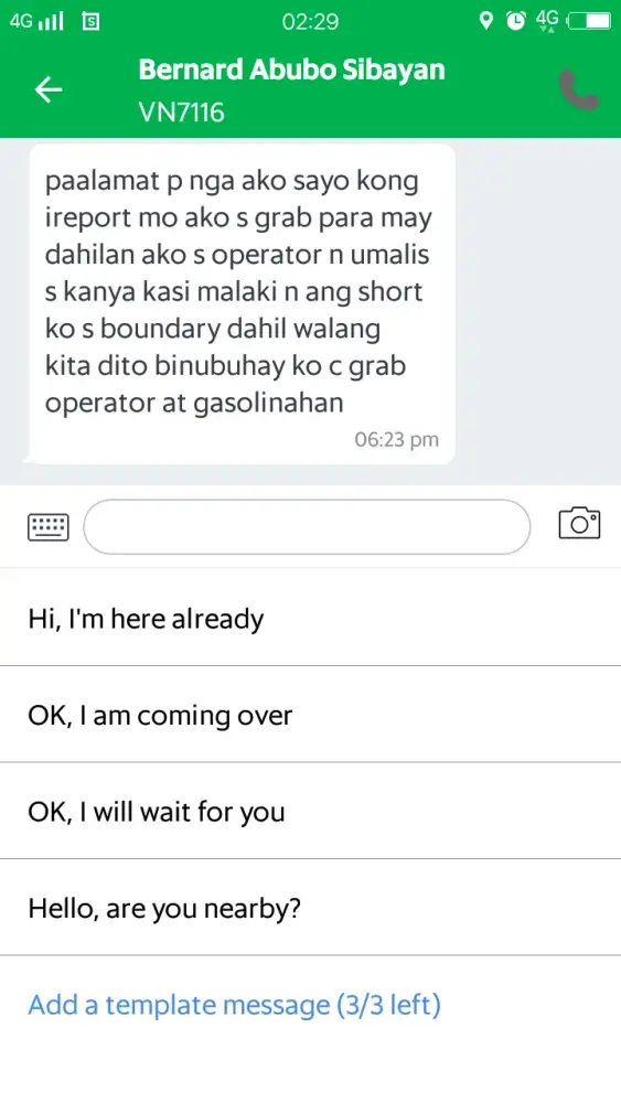 I accidentally booked a GrabShare ride which I informed the driver that I will cancel instead of proceeding with the current booking. Upon cancelling the booking the driver sent a rude text towards me. He insinuated that I was wasting his gas and his time, where I saw his movement on the map was just a couple of meters before I cancelled it. (Screenshot provided below)