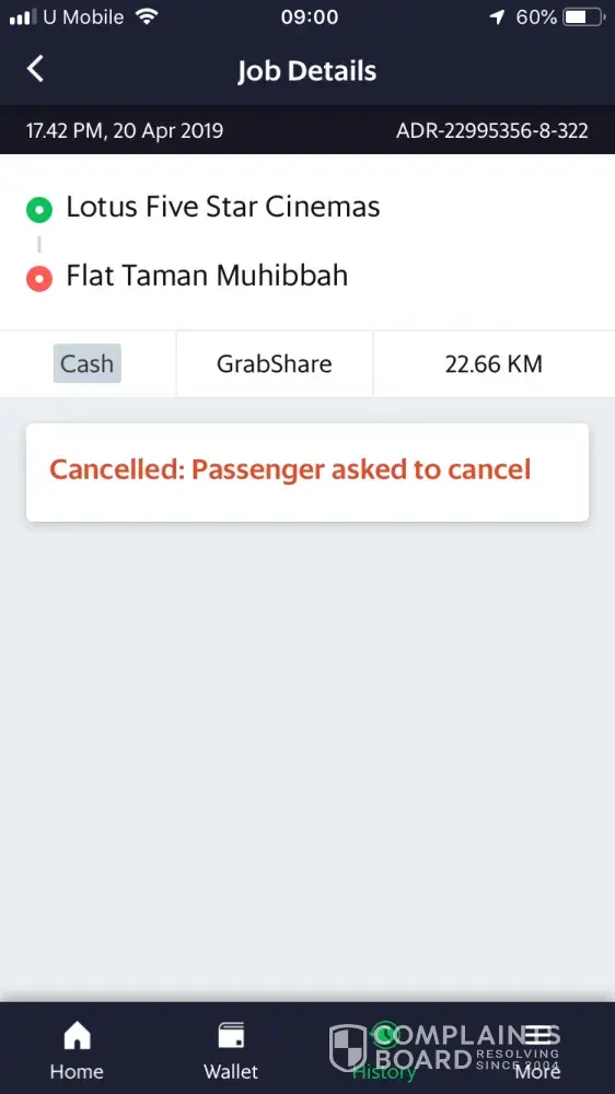 Saya nak buat aduan tentang drive grab.. Kes pertama drive grab cancel oder saya alasan dia tunggu lebih 5 minit sedangkan dia tidak datang pun ke location yang saya berikan.. Dia sampai ke location lain bila saya tengok melalui maps grab. Tetapi dia cancel. Lagi 1 kes saya oder n tunggu hampir setengah jam grab tak sampai sampai. Grab tersebut lansung tak berganjak.. Saya tengok melalui maps grab tersebut tetap berada tempat yang sama. Saya cuba mesej n call drive tersebut tapi tak di jawab.kalau tak nak ambil saya kenapa terima bila saya booking.
