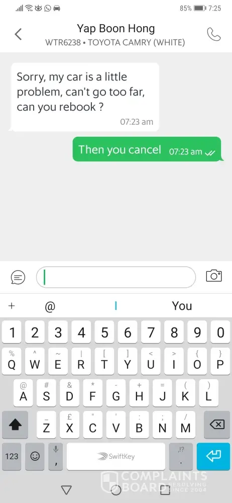 ambut Dalam To KLIA 2) was cancelled by your drivers. They gave me lame excuses. They asked me to rebook and waiting for me to cancel ( to prevent get penalty from Grab) I insisted that they must cancel.. They cancel my booking more than 5 minutes.. This is waste of my time. This act are irresponsible & unacceptable..
