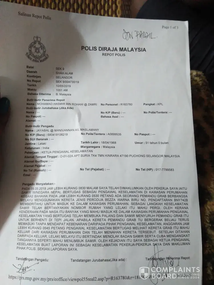Grabcar Malaysia a driver who was rude and did not respect your passenger rights