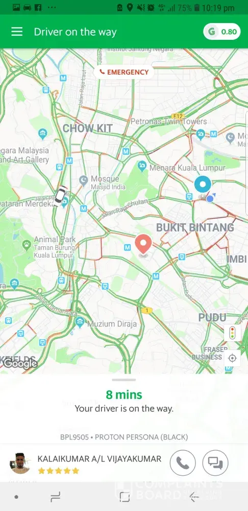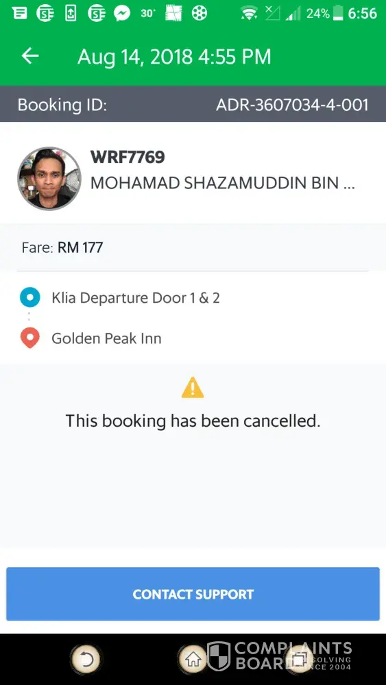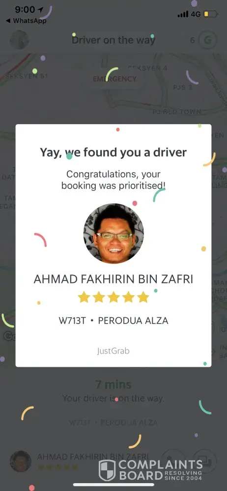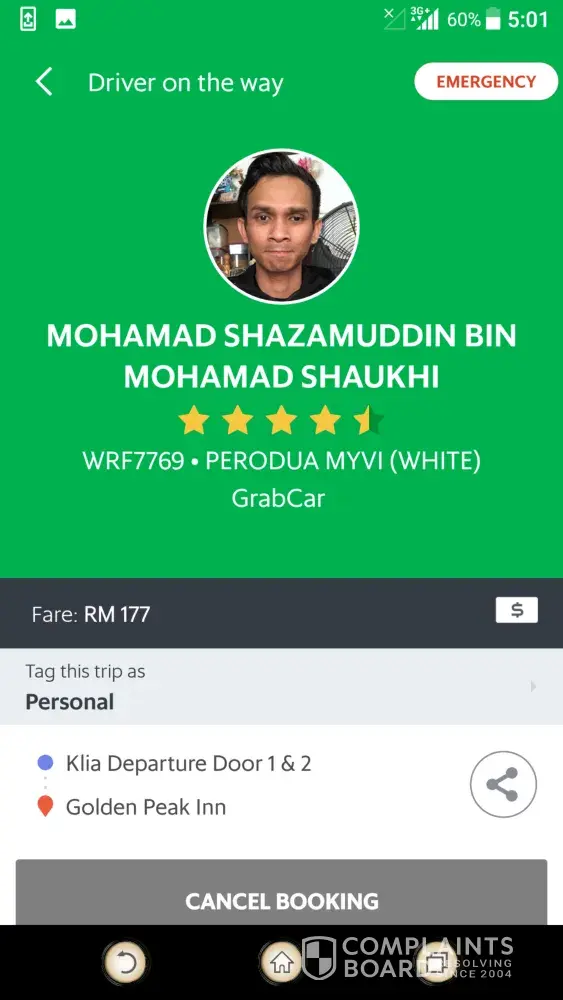 complaint against grab car plate number wrf7769 - driver mohamad shazamuddin