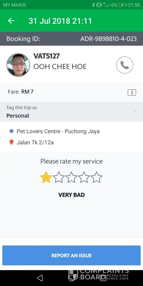 But I am here to complaint what I have experience as it is not right for anyone to get that type of service from any grab car / grab taxi driver.