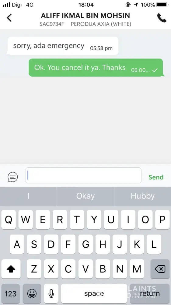 I talk back ' this is the worst grab car service'