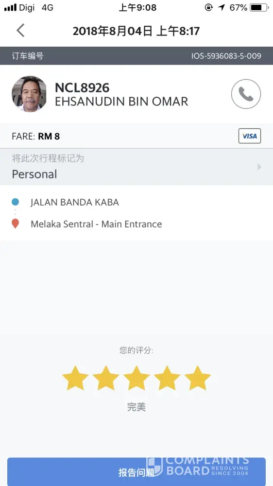 I want to complain about driver (booking number: ios59360835009)