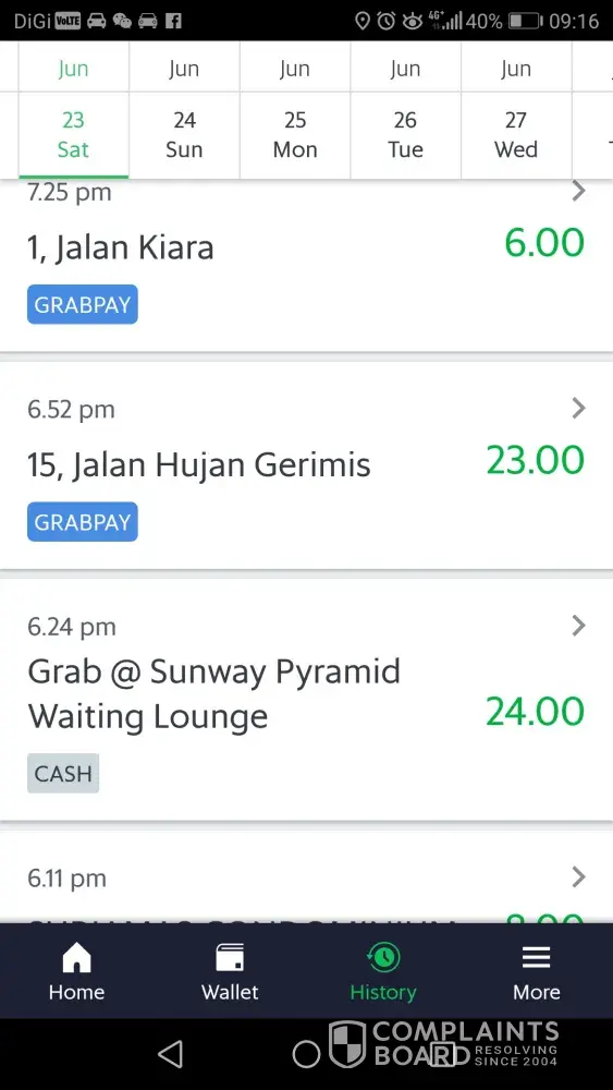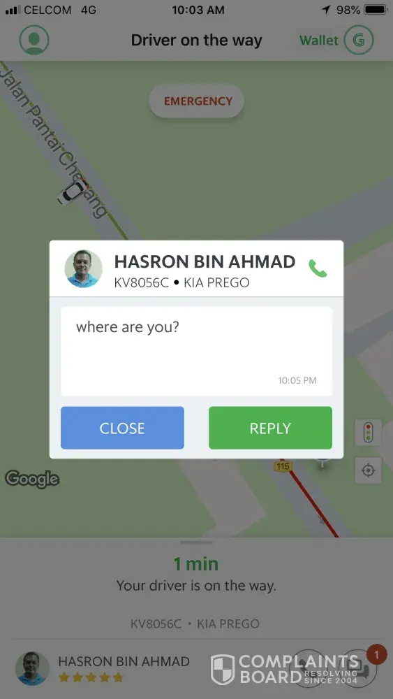 complaints as a grabcar driver.