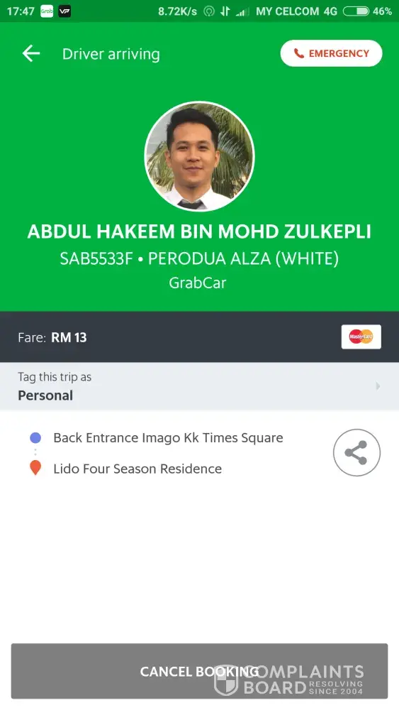 I hope GrabCar will take disciplinary action against Abdul Halim Bin Haris, to uphold the image and credibility of all other GrabCars' drivers.