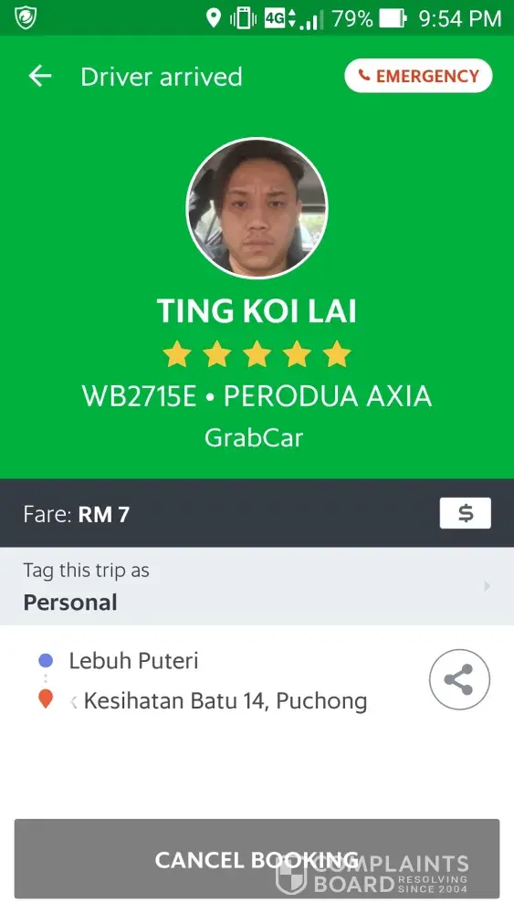 @marc, You have been cheated/scammed big time by the Grab driver. It is a pity. You have the e-mail an official complaint to Grab Malaysia with the car plate's number. Copy the e-mail to SPAD (the local regulator): aduan@spad.gov.my
