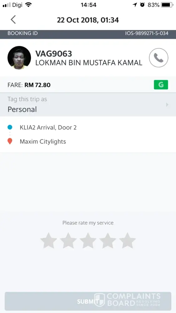 I want to complain that the pricing is too expensive, i just from setia alam to klia2, but the driver price can charge me RM285.41. Suppose the price is written there RM180. This price is too over compare to other car booking service.