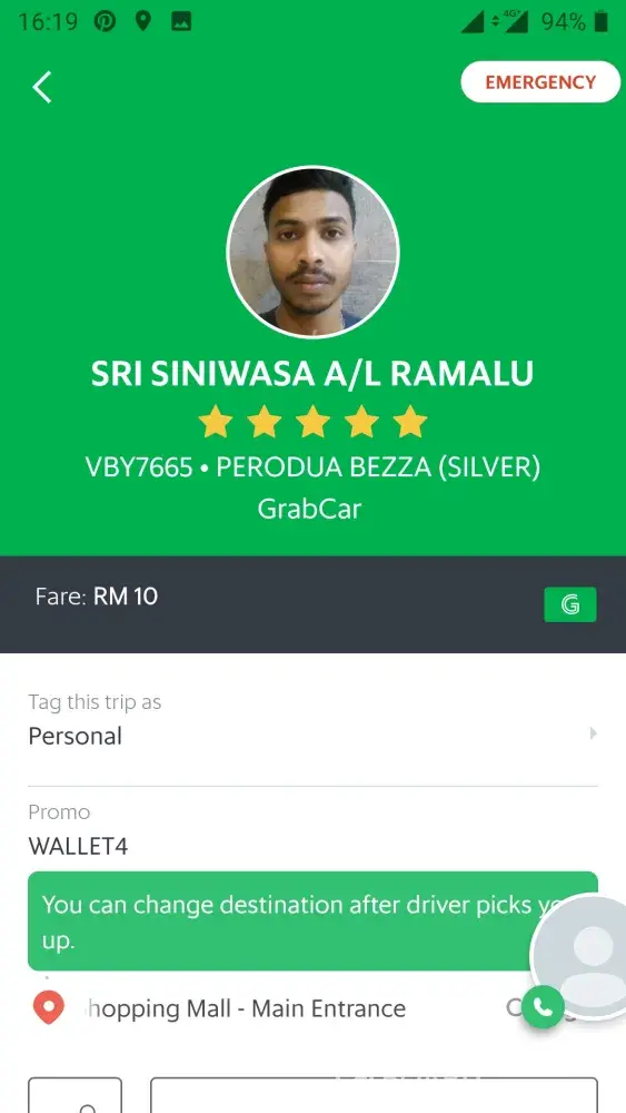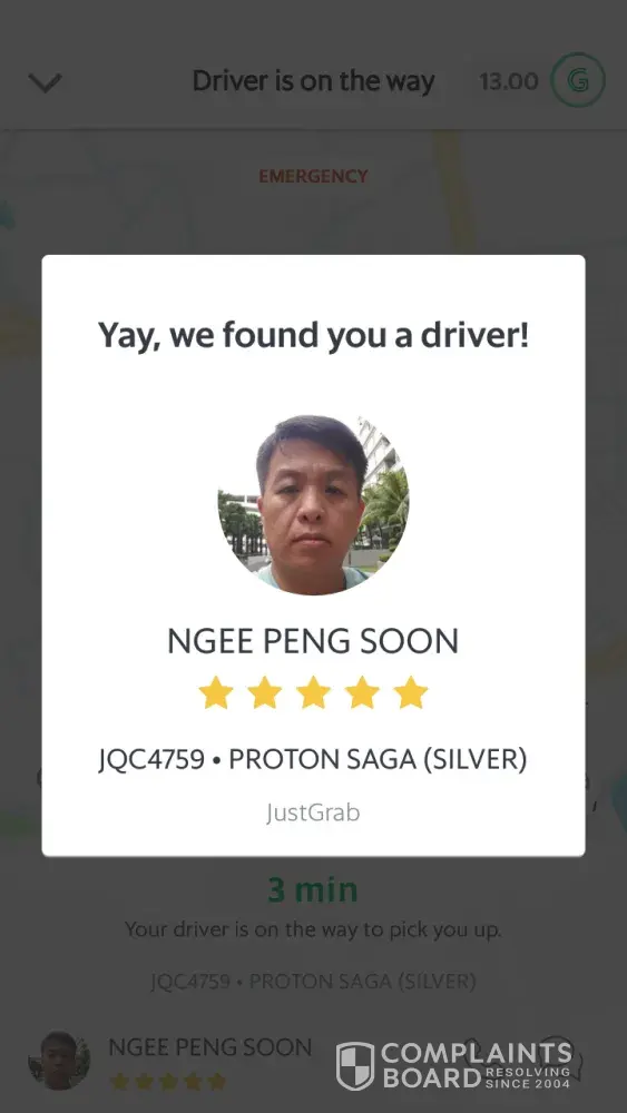 This man Mr. Sri Siniwasa A/L Ramalu driving perodua bezza (silver) with plate number VBY7665 is not responding to my request and the screen show it was 3 minutes drive to my place but i have been waited for 15 minutes. He claimed he was stuck in jam but to my dismay this road doesn't have any traffic light as it is around housing area. I already pay using my grabpay with amount Rm10, it was deducted already. Do entitled to get my money back as this is not my fault and its raining here, i am in rush.