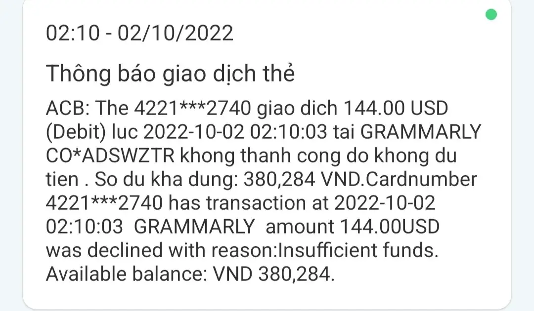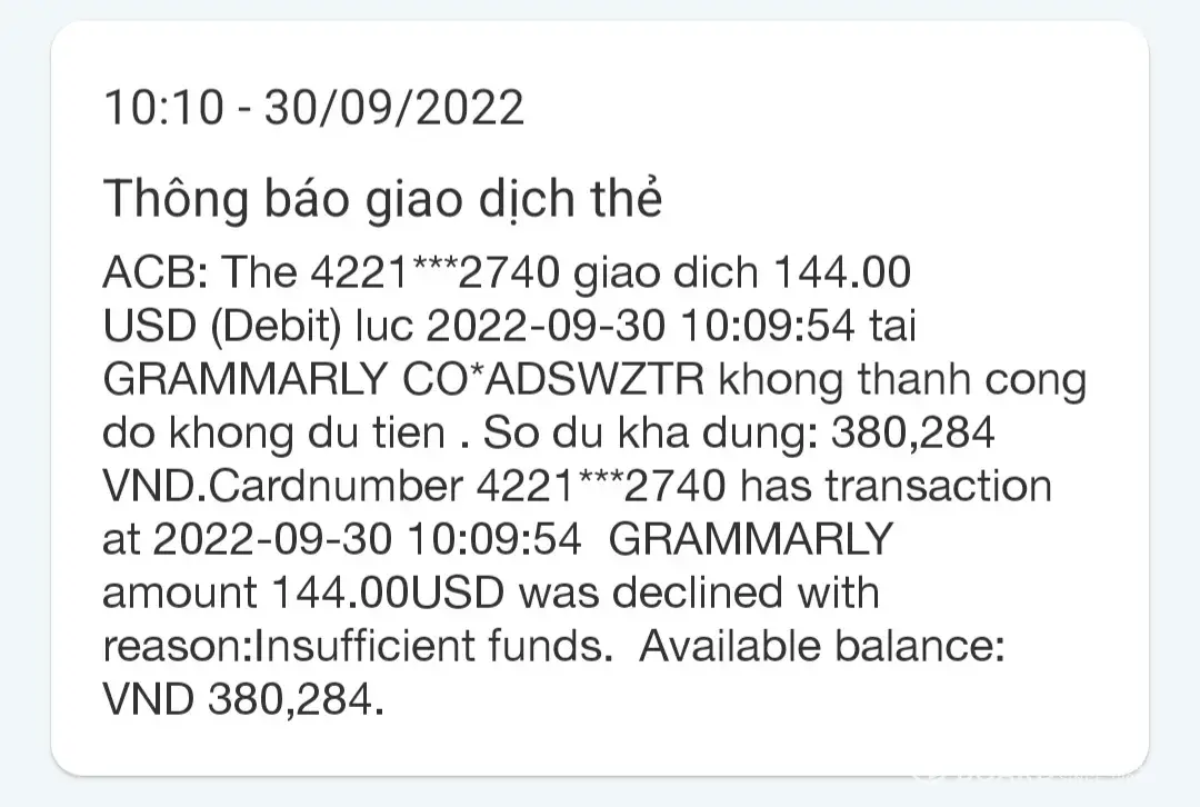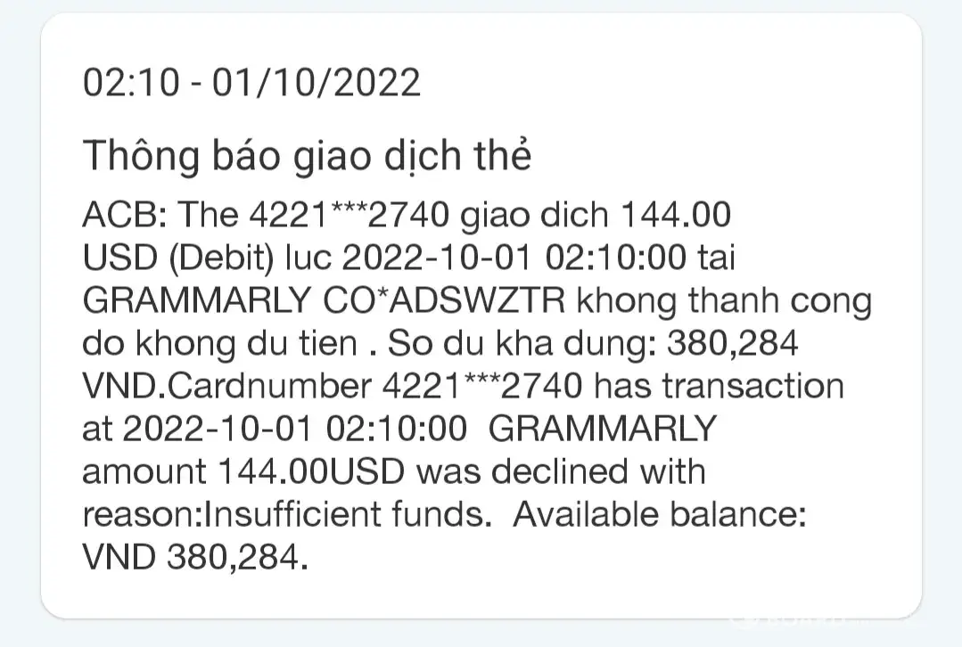 Every day I get charged by Grammarly for a fee of 144 usd per day. Luckily my account doesn't have enough money to spend. I was charged on September 30, October 1 and October 2, below is the image I was charged by Grammarly. to easily contact me, this is my email [protected]@gmail.com