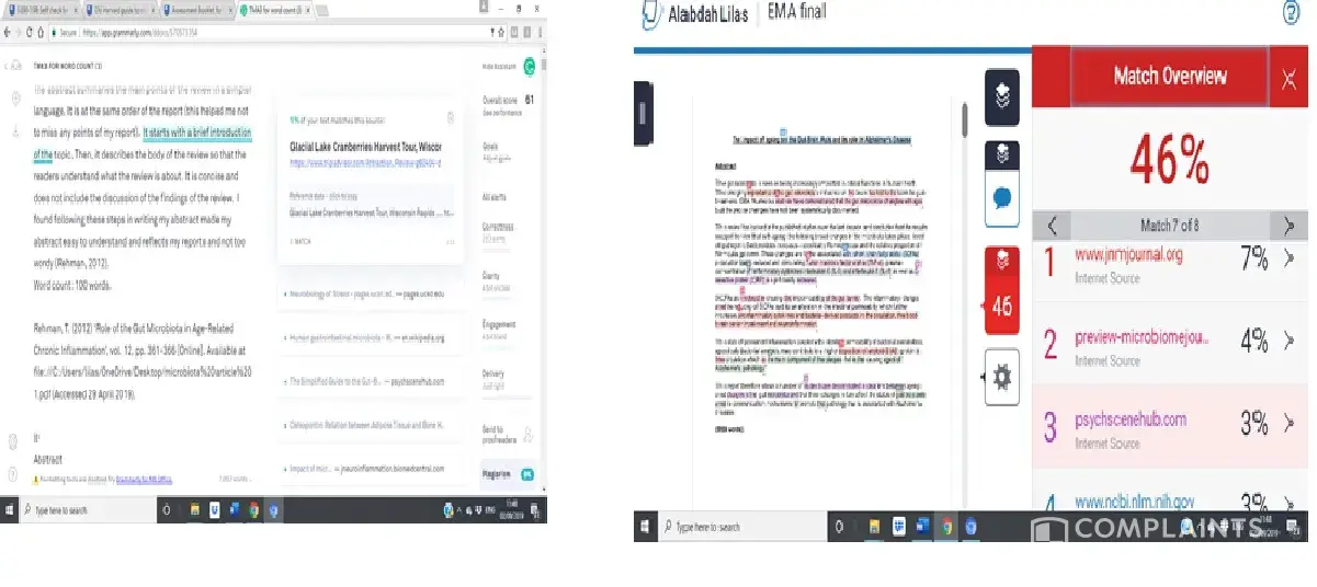 I've attached two screenshot images to show you an example how different the plagiarism detected by Gammarly and my tutor feedback were. The images also show that for the same paragraph the highlighted plagiarized by my tutor feedback differ from Grammarly. Please tell me if you need further details.
