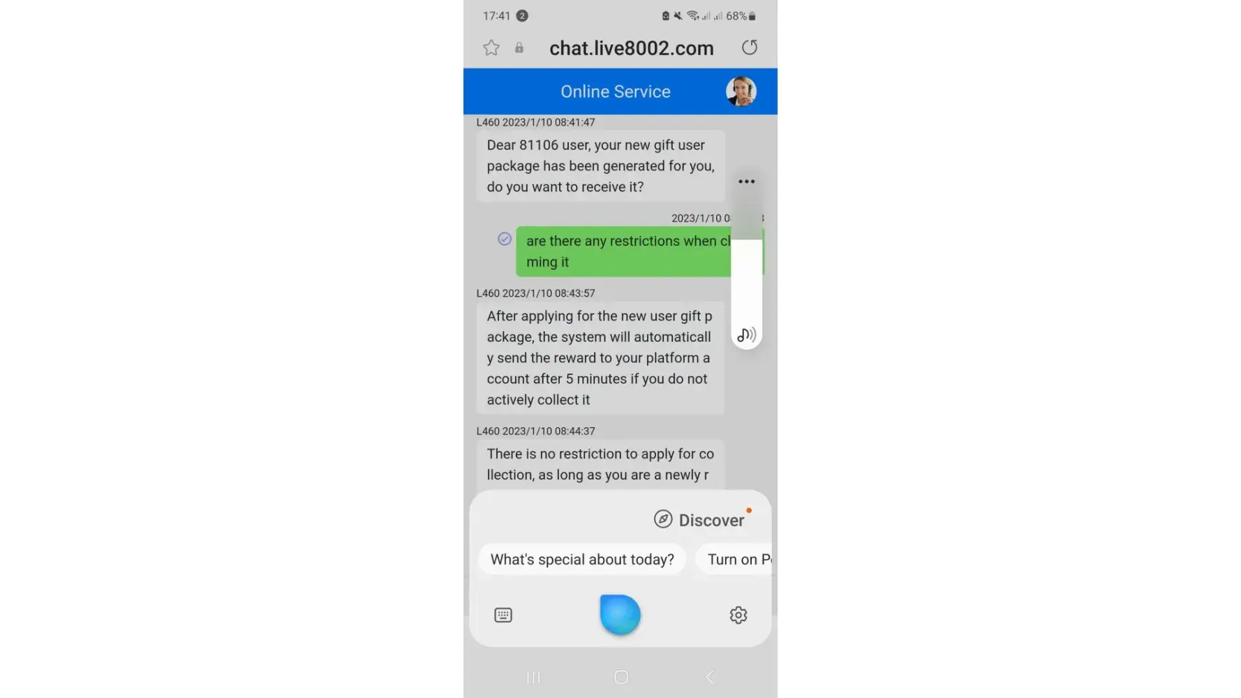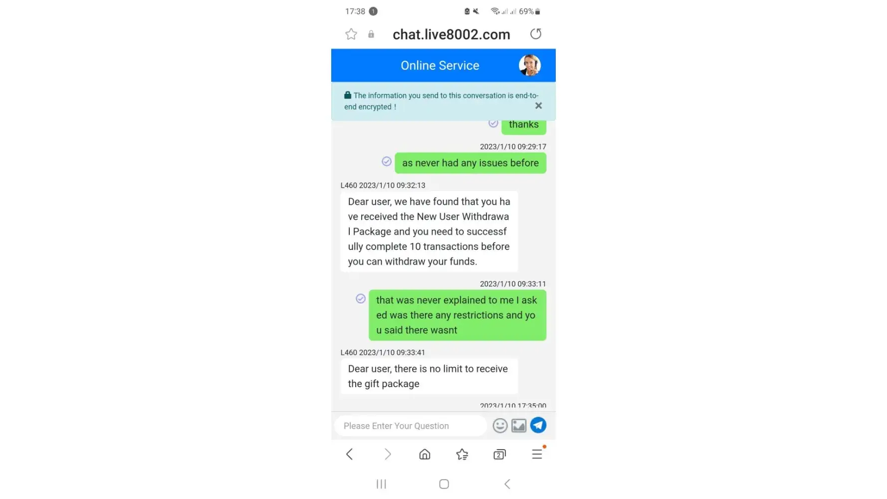 Desired outcome: I wish to cancel the new user package and withdraw my funds as if I can't this will leave me in financial difficulties. Also if a customer asks about any restrictions, you advise them of this rule before accepting the new user package.