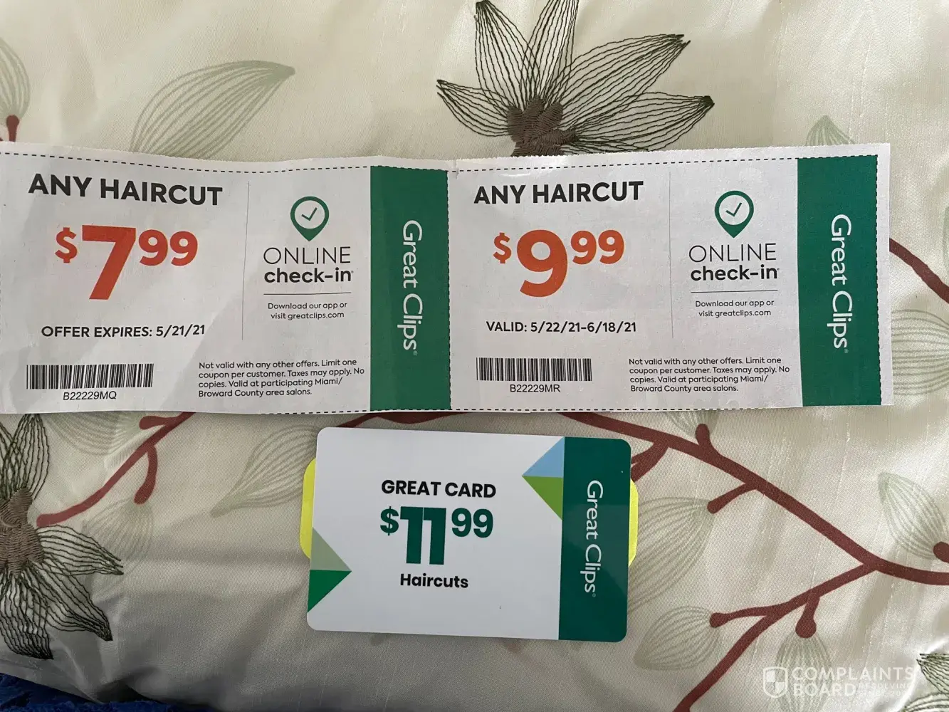 At Great Clips in Fort Lauderdale I realized I left my coupon and prepayment card in the car. I told the Great Clip's employee I was running out to my car to get them. I mentioned this to her twice so it was clear what I was doing. I gave her $20 so she knew I was not running off without paying and again told her I would be right back. When I returned a five minutes later, she already cashed me out for $16.00. I asked her to refund the charge and either take the coupon or prepayment card and she refused. I walked out of there in disbelief.