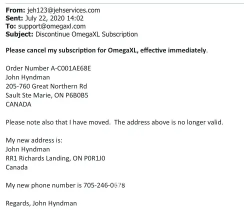 My name is Shirley Vernon address: 12 Vickilyn Ct, Greenville, SC, It is not the product but the price, $40.00 a bottle this I can't afford. I need you to cancel this order. Please Stop withdrawing from by bank account for this Omega XL. Maybe at a later date I can reorder.Please send a cancelation confirmation to my e-mail address: