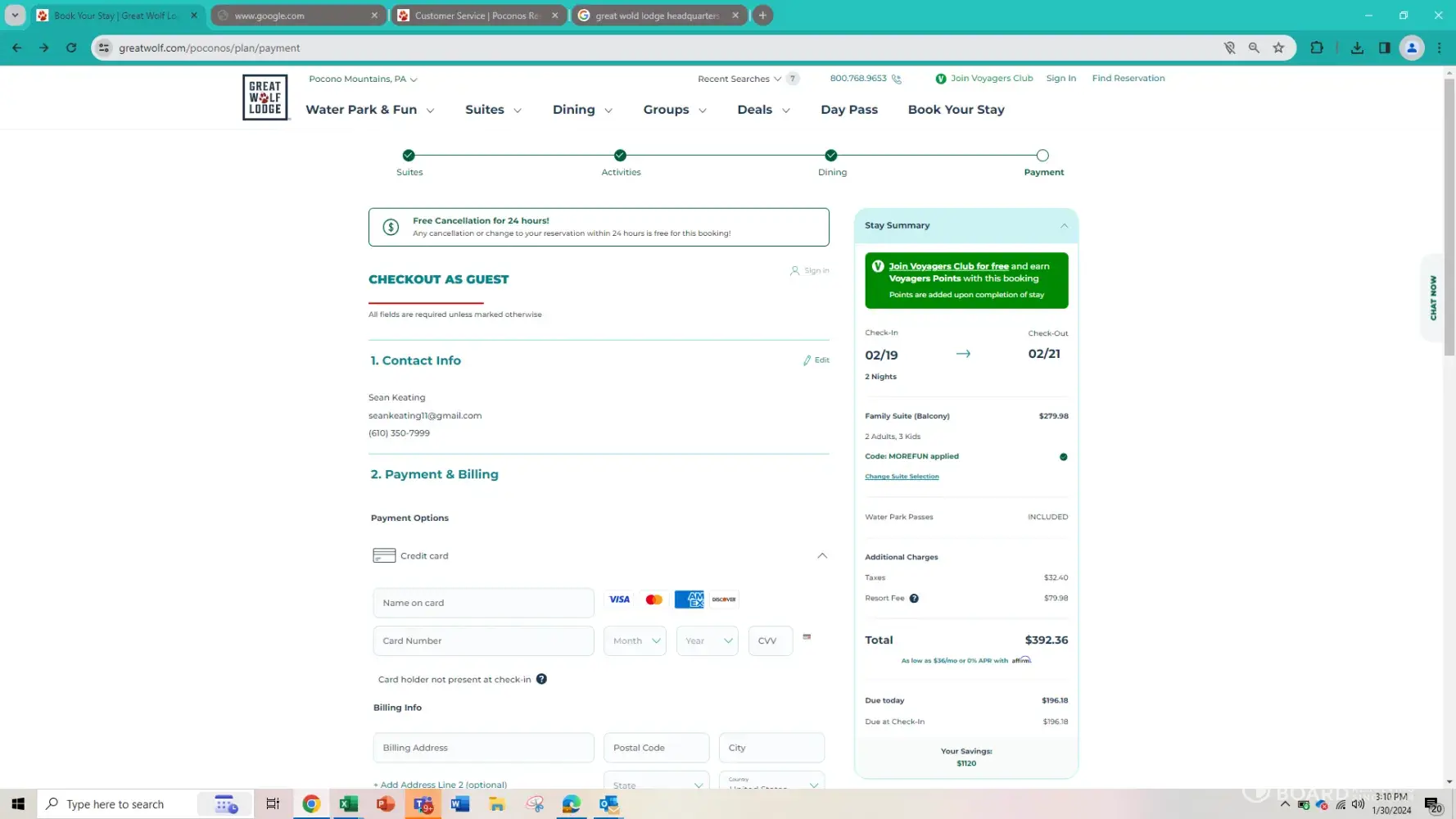 Great Wolf Lodge Inaccurate price on website confirmation number: 38562098