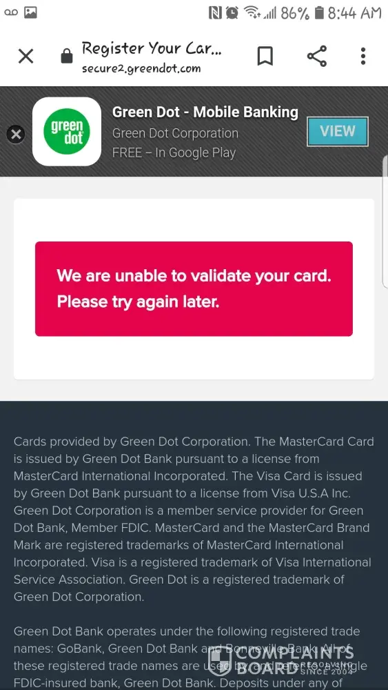 Green Dot I’m complaining about account