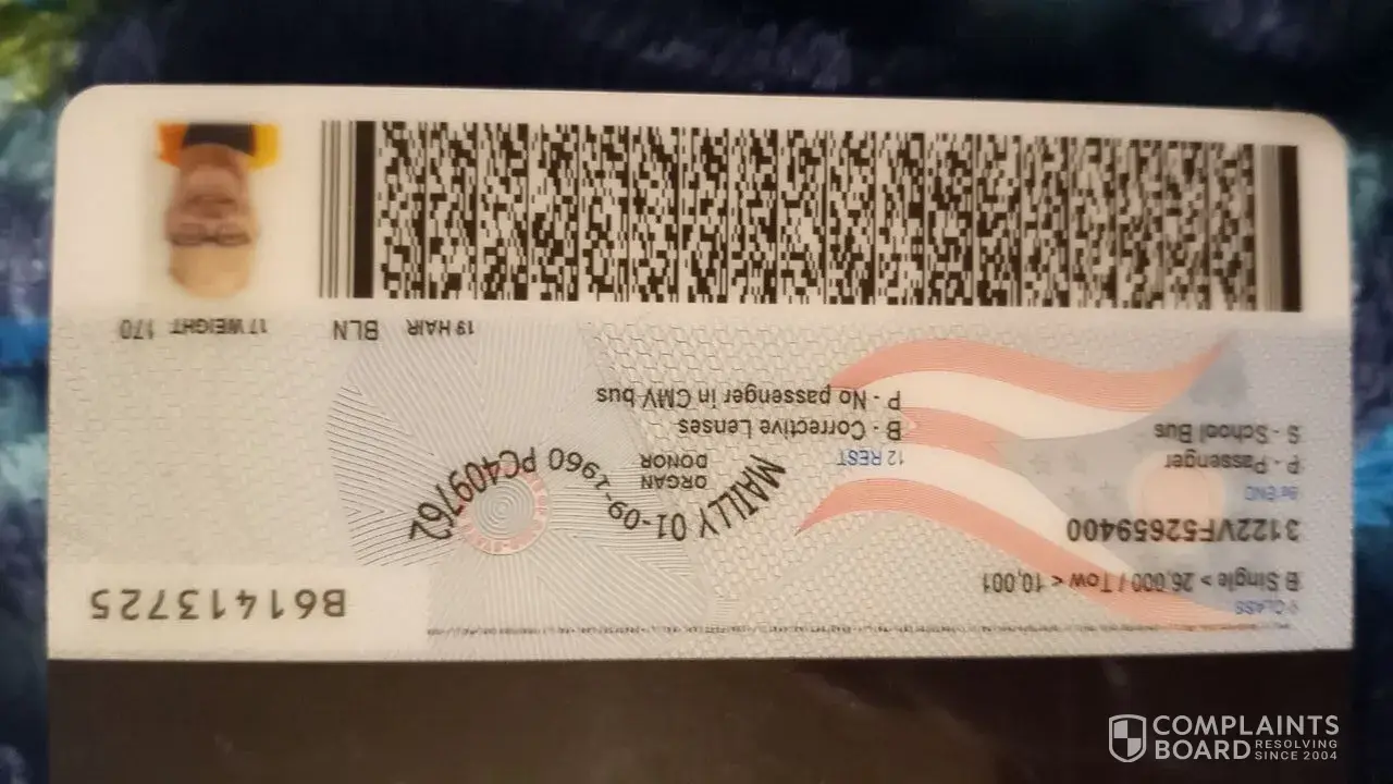 I have been trying to send my copy of my I'd he A week and 1⁄2And they keep on saying they can't read it I am sending it through here Have called Many time And was on hold for 6 hours