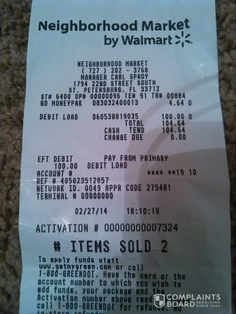 I bought one of these cards to pay for my school books. I registered it, and recieved my permanent card in the mail. When I tried to go online to check my balance and add more it wouldnt grant me access. Thank God I figured that out, I was going to have my social security direct deposited to the account! This card is a scam! there is no way of access it and there is no way of talking to a person about it! My card is now worthless, I am losing the money that I put on it, and there is no way to get it back! Another way that Walmart likes to screw with people because it can! And I thought that monopolies were illegal! I am now possibly going to have to drop out of school after recieving a grant to go, because I cant cover my books! I will never shop at Wal Mart again! That was the straw that broke the camels back!. We bought a set of dishes there once and they were all broke. The store took them back without a problem and gave the money back, but then put the broken set of dishes back on the shelf to sell again!