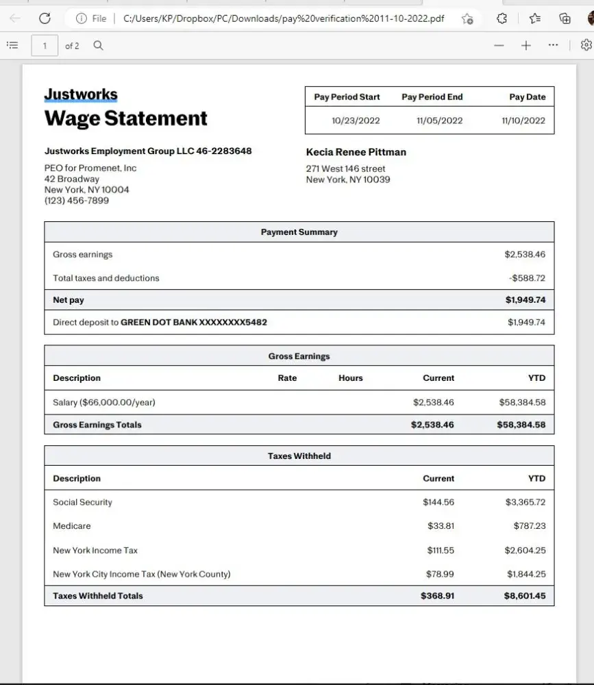On November 23, 2022 I was contacted by Ruby Pruthi who informed me that she received this letter-and that it is not Green Dot's address.