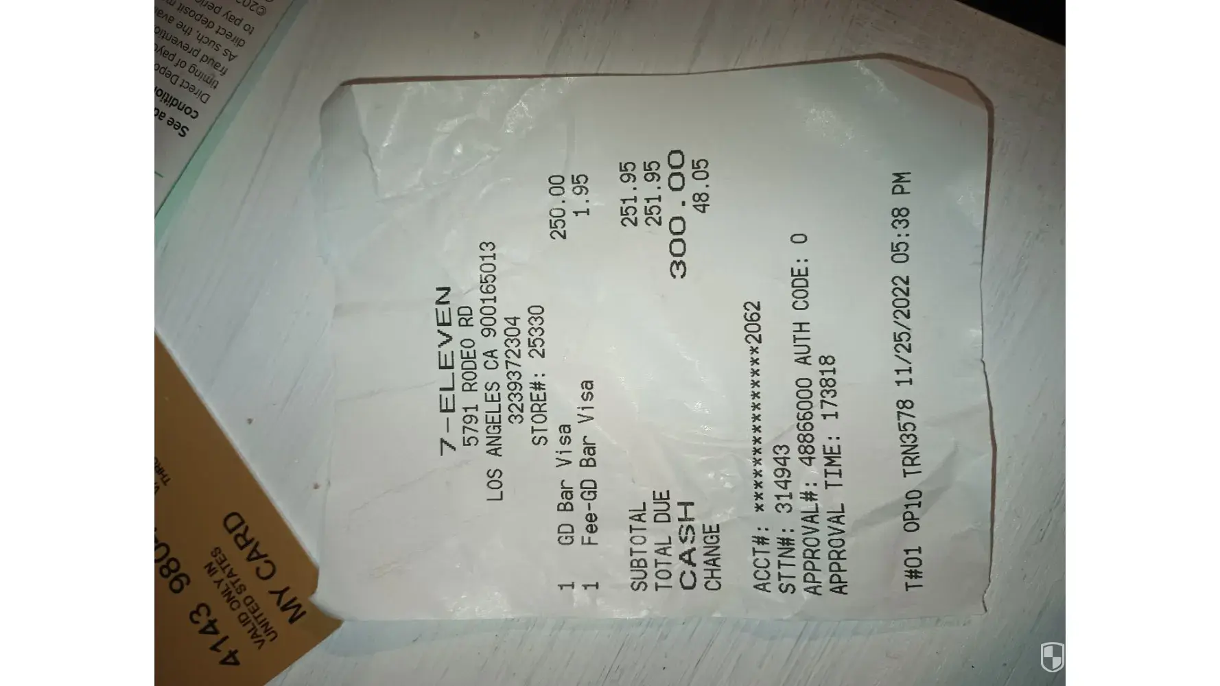 The Kroger receipt identifies the last four digits of the card sold as 0549.