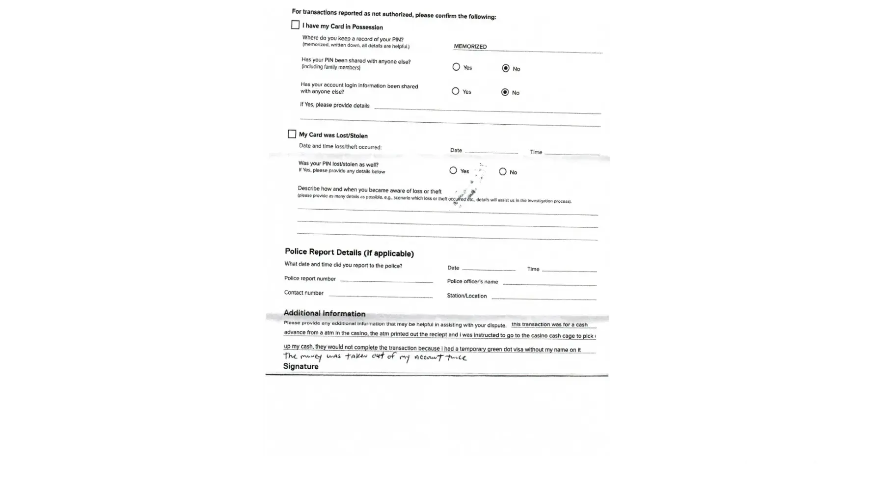 Recently there was a transaction on my card that I did not authorize through PayPal, I called to report it and was told that I would have to have my card blocked and wait 7-10 business days for a new card and also wait for green dot to investigate to receive my funds back. I then received an email that I was unable to receive my funds and I also got charged a $5.00 fee for having to get a new card. I felt that was very unfair to lose out on money and get charged for a card that I did not lose or damage the card was in my position the whole time which I don’t understand how it was charged on PayPal, however, why charge me for a new card that fee should have been waived. I ended up losing out on $55.00 in total. Companies these days do not understand the definition of good customer service or basic common sense, why charge a fee for a card that was not lost or damaged. Good customer service is not charging the customer more money after they have already lost out. Going further I will definitely be opting out of using Green Dot and try another company to use with more common sense customer service.
