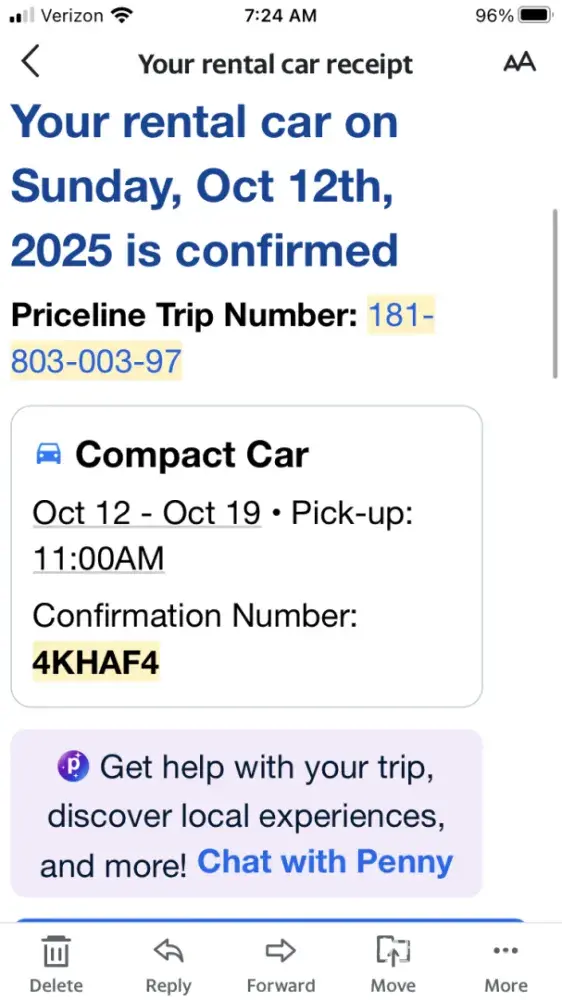 Car rental at tpa location, on 10/12/2025. Rental confirmation #4khaf4