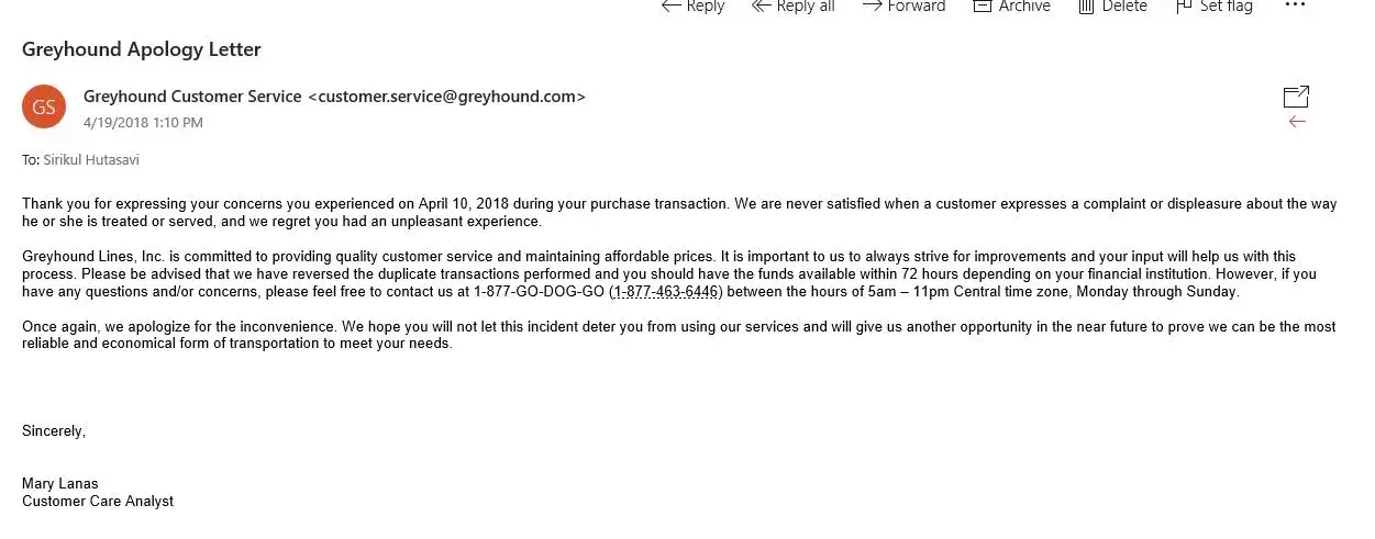 I did not receive any email or notification that there would be a delay and I was not told about the multiple stops on the way going back. I am very disappointed with the services provided by Greyhound and the staff I spoke to on my trip were very rude. I will not be riding with Greyhound ever again.