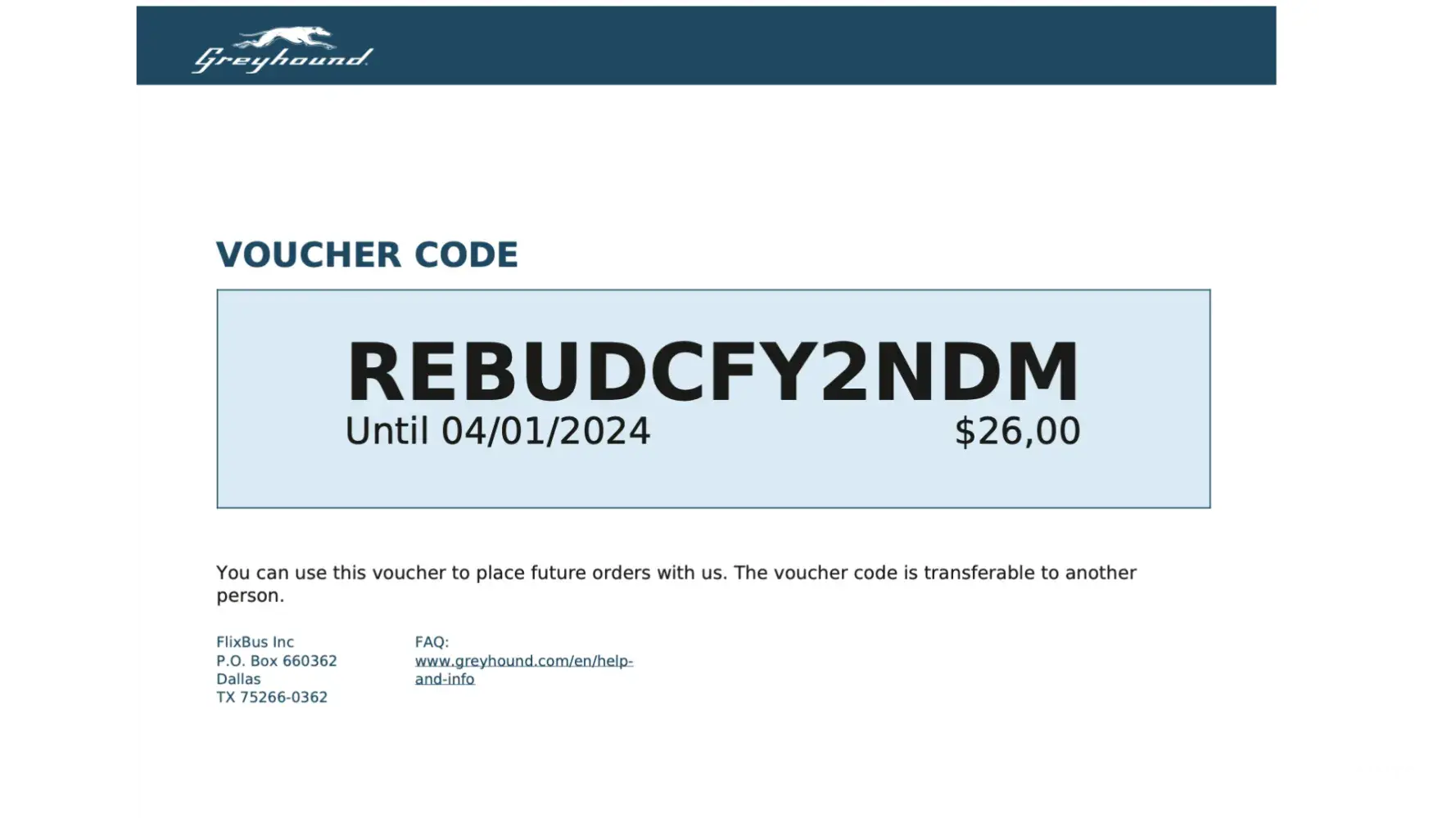 Desired outcome: Refund the US$139 and they can keep the voucher because I have no intention of using Greyhound again.