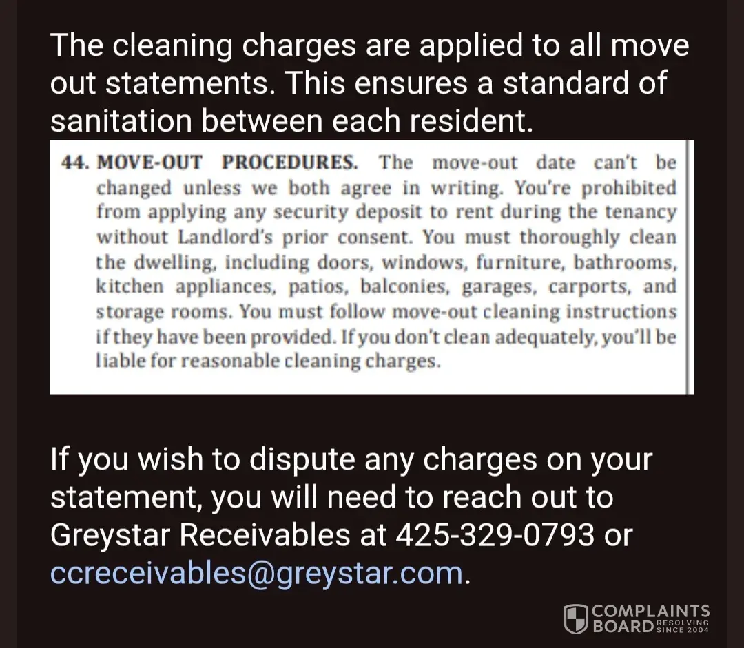 However, three months after moving out, I received an unexpected call from a Greystar representative. The person was extremely rude and demanded that I pay for a full year of rent because I allegedly missed one month’s payment. While I am willing to resolve the issue and pay for the missed month, I do not agree to being charged for an entire year, as this was never part of our agreement.