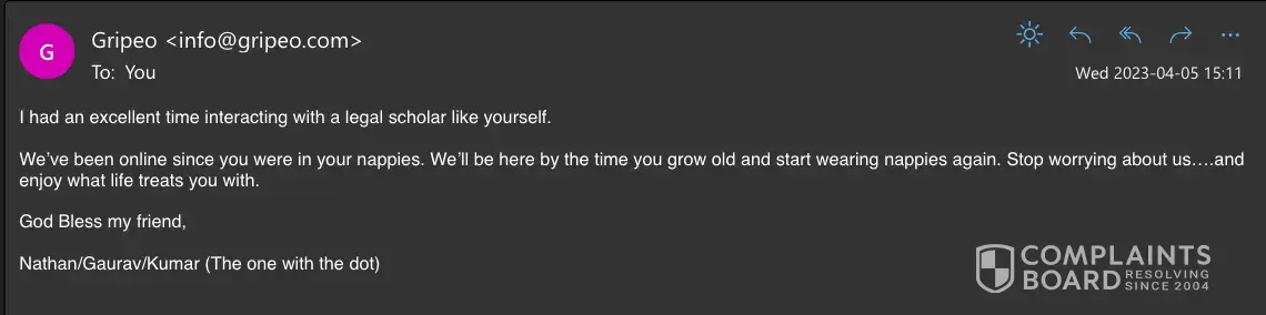 - Do not trust GripeO for Anything.
