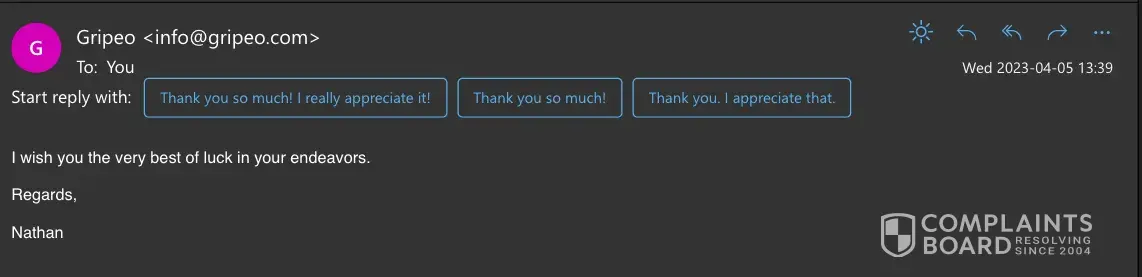 - GripeO's complaint resolution process is inadequate and ineffective. The support team lacks customer service skills, training, and resources, resulting in only 0% of 0 complaints being resolved.