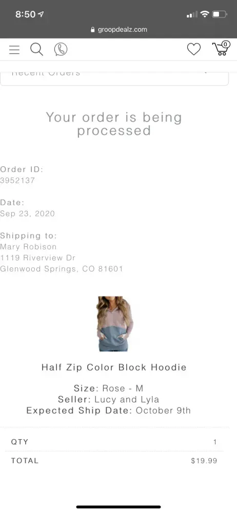 Number: 3951903. I have emailed support@groopdealz.com and received no answer or response of any kind whatsoever. Do I need to seek legal means with this situation? I realize that the amount of money is not a lot to some people, but I have nearly 82 years old and it means a lot to me plus my granddaughter is quite disappointed. Please advise as to what my options are now, if any. I hate giving bad reviews for companies, but at this point, I must do something to either retrieve my money or receive the clothing ordered.