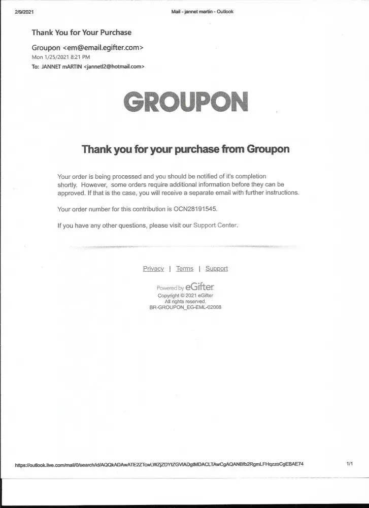 If and when Groupon replies, I have all receipts, email replies, and copies of my statement to validate my claim.