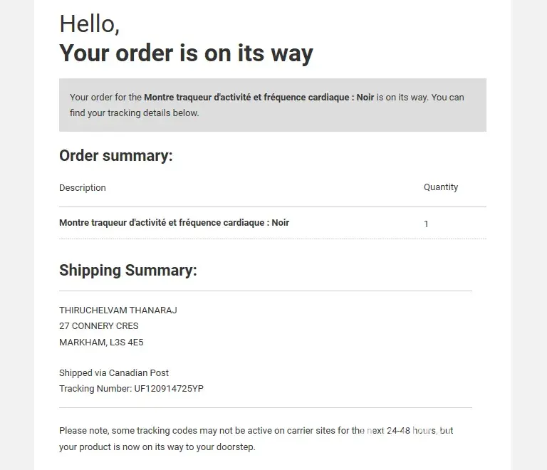I place an order on groupon.ca on April 17, 2020 for a ID115HR Plus Fitness Tracker 0.96'' OLED Touch Screen with Heart Rate Monitor (Order #[protected]). The cost of order $40.00 charged on my credit card on April 17, 2020. on April 23, I received an email with a tracking#UF120914725YP order is on the way, but not yet received. I checked with CANAD POST but they confirmed that this tracking number may be fake. I contacted groupon.ca several times, but no solution yet. It seems this is organized fraud. So please help me find a solution as soon as possible. I am paying interest to my credit card.