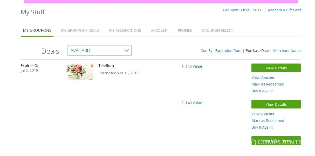 Tried the chat - useless. They can cancel my Teleflora order which is not going to help and the 2nd voucher won't be made available and there are no Groupon refunds.