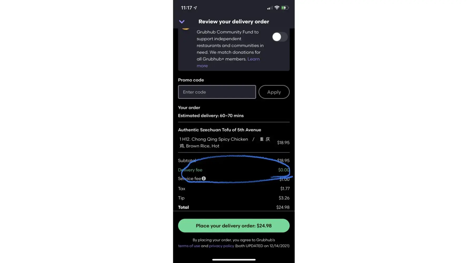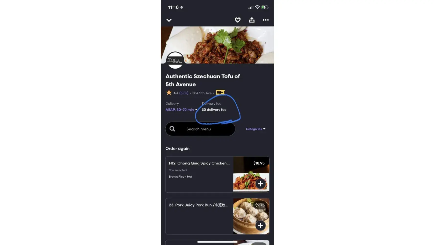 I'd recommend if using a food delivery app, pass on GrubHub.
