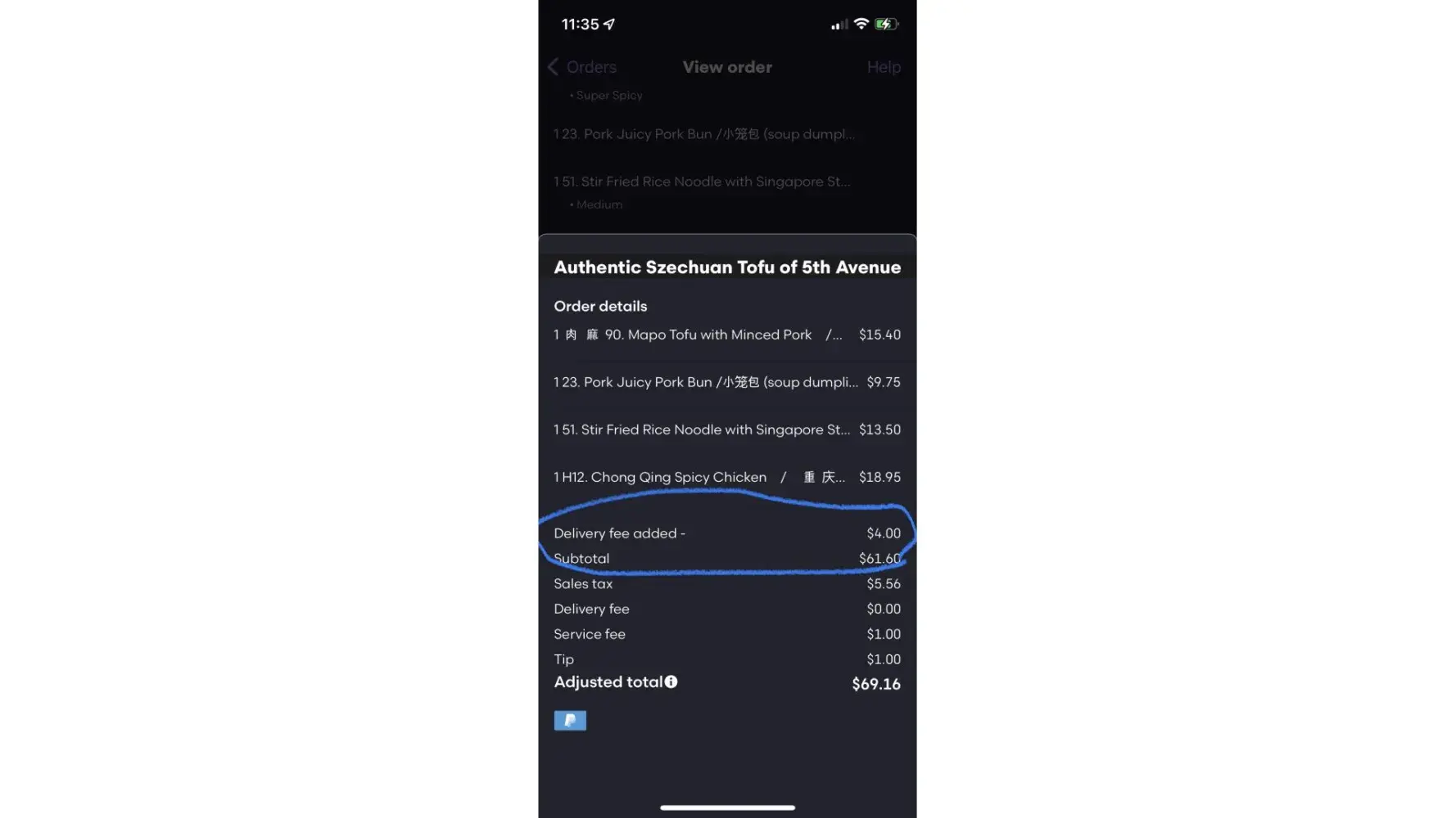 2. Additional delivery fee was charged without any alerts or messages when it says "No Delivery fee" clearly below the restaurant's name.