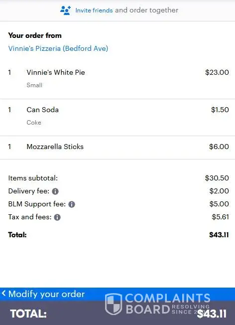 Desired outcome: 1/2 my money back for NON devlievered food.