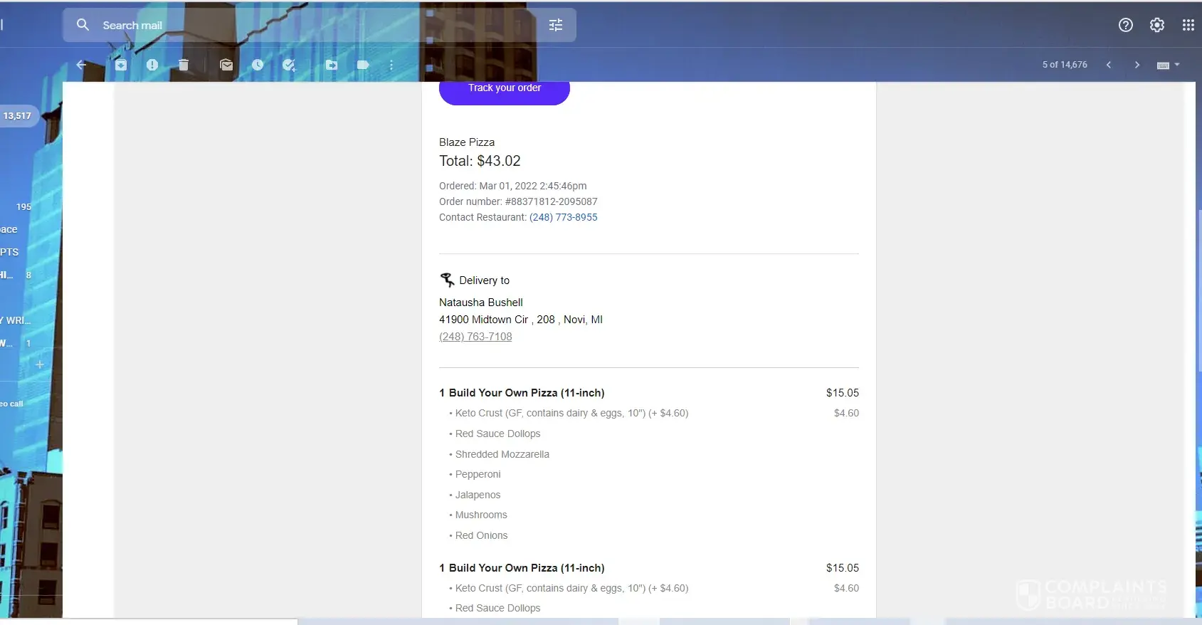 Hi, I ordered two pizzas today March 1, 2022 from Blaza Pizza through Grub Hub, and it showed delivered. I never received the food I spent 45.00 and paid delivery fees with no food. I call Grub hub and they said it will take 3-5 business days to refund my money. That was my last money, for food now I have to wait that is unacceptable