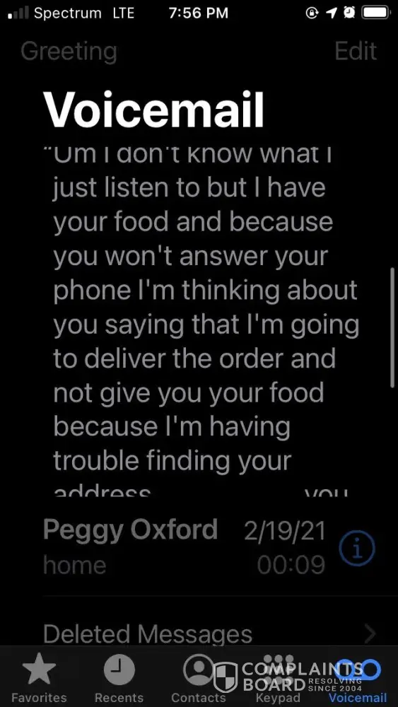 I ordered from grub hub and waited almost 2 hours for my food. I don't except calls from numbers I don't know and on the app it said that I would get a text from the driver. When I went to check when my food was getting here when I had a voicemail from the driver saying that he was just going to say he had delivered my food and that I'm not getting it. I've attached a photo of the voicemail transcript. I tried calling back several times but didn't get an answer. when I tried to get a refund I got less than half of my money back, this is basally not okay! I never got my food and this has been the worst customer service I've seen. I would like a full refund.