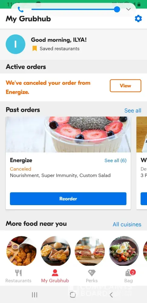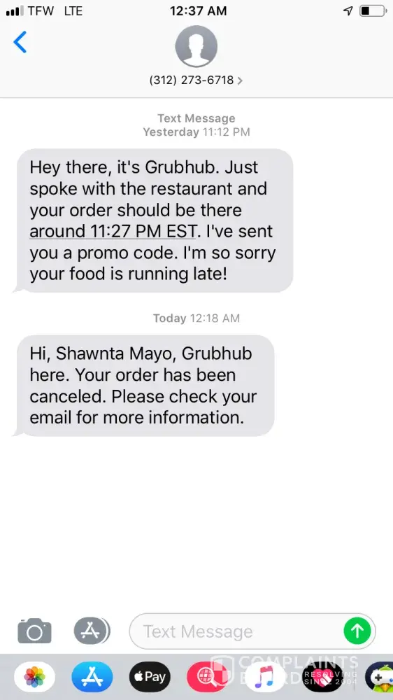 When I came to the restaurant they said they never received an notification from GrubHub. The restaurant owner told me how much problem they have with GrubHub passing on orders and they have had numerous complains. Going back into the account, GrubHub took my order, charged my account and then cancelled the order and refunded my account without any further notification either to me or the restaurant.
